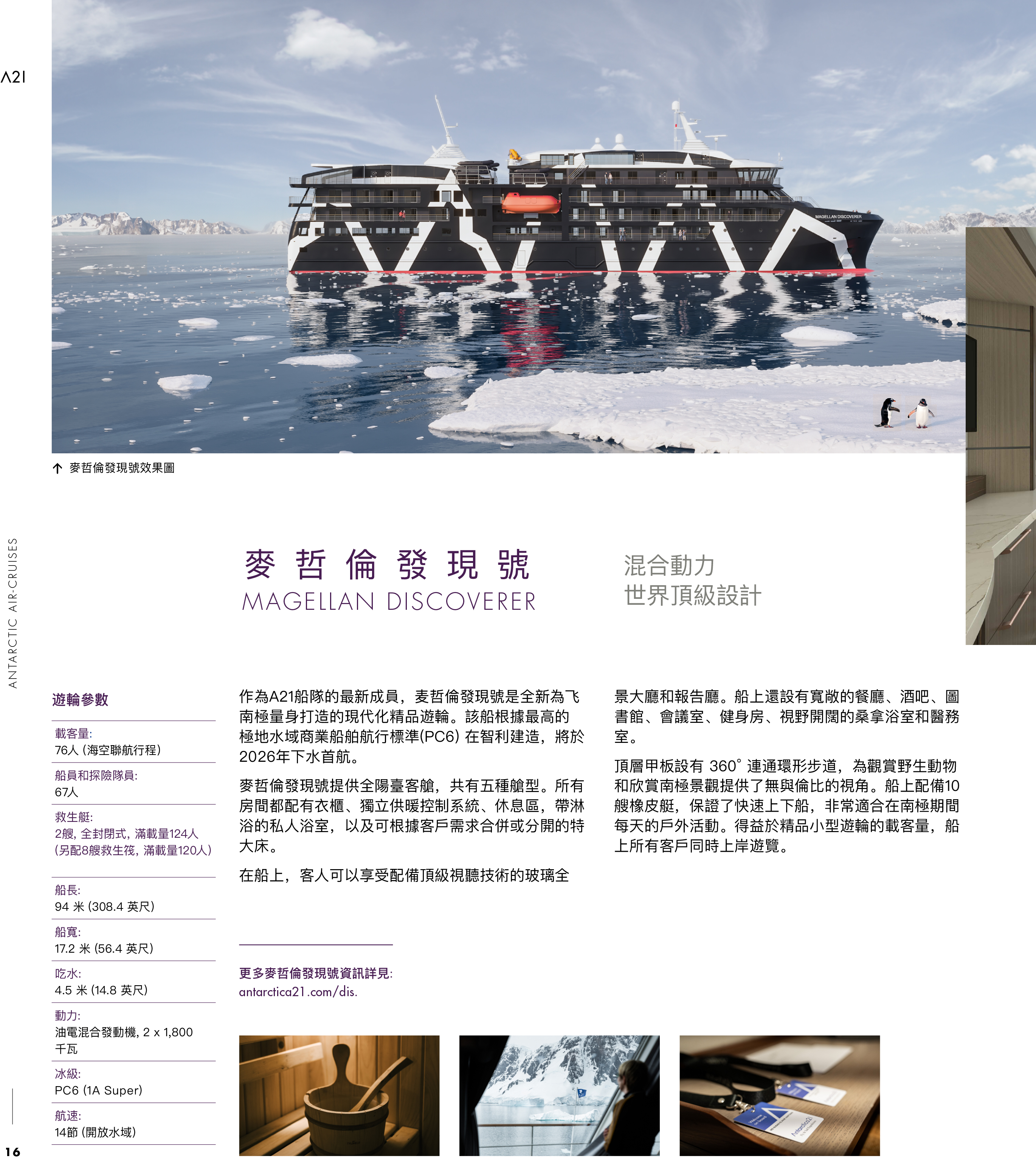 路线名称:【Antarctica21】南极经典海空联航8天7晚——麦哲伦发现号&麦哲伦探索号(智利进出)